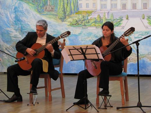 После этого маестро Альдо Родригес объявил, что он посвящает этот концерт несправедливо осужденным в США пяти кубинским патриотам, вся вина которых заключалась в том, что они защищали свою родину от террористов. В первой части концерта он виртуозно исполнил шесть замечательных пьес, среди которых особо выделялась «Компарса» Ернесто Лекуона. Вторую часть концерта Альдо Родригес исполнял в дуэте с известной костариканской гитаристкой Кармен Вега.