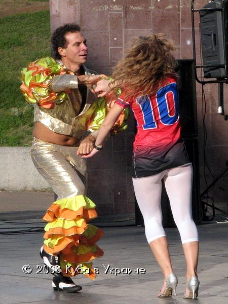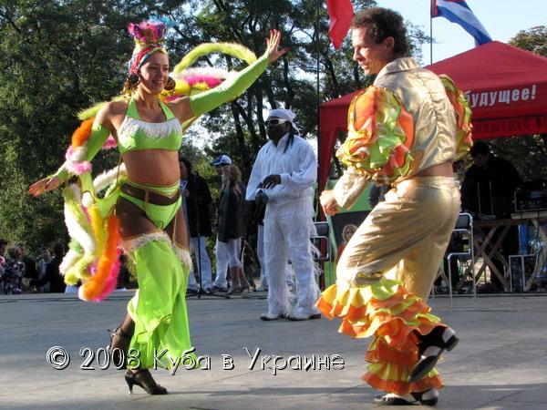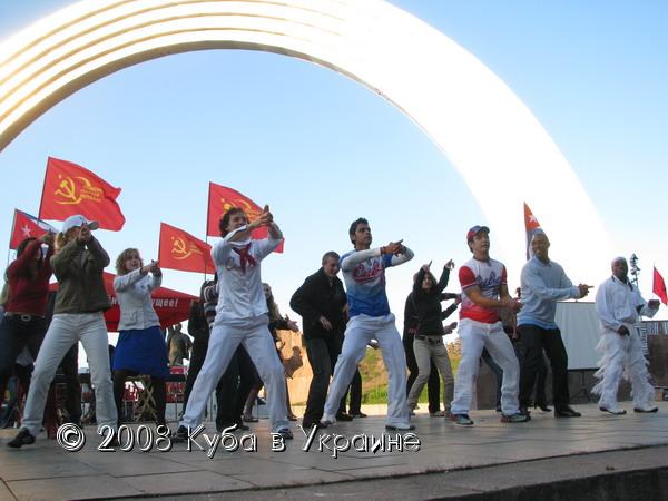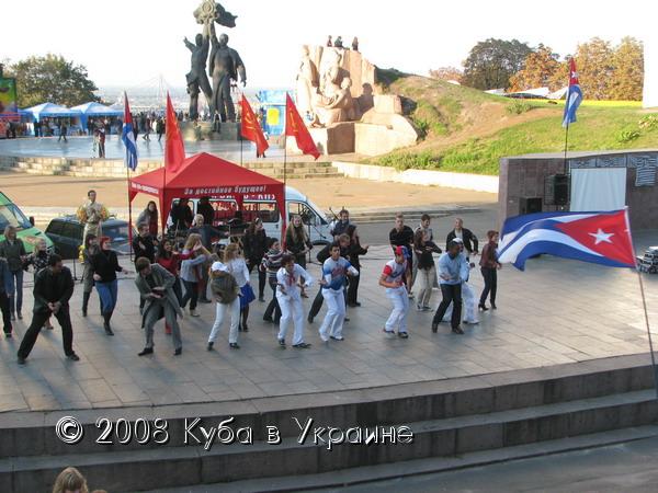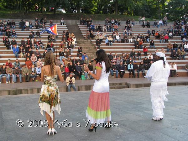 Киев не стал исключением. В символическом месте - амфитеатре Арки дружбы народов - горячие ритмы Кубы, в исполнении самих кубинцев, а именно: Луиса Рейна, Мигеля Анхеля, Майкеля Роке, Рейнальдо Погуэля, проекта "Матаморос сон" и танцевальной школы "Сальса Клуб", - согревали более 500 жителей и гостей столицы Украины в прохладный, но солнечный осенний вечер. Зажигательные песни и энергичные танцы в ритме ча-ча-ча, сальса и румбы, длившиеся около полутора часа, ошеломительные наряды не оставили равнодушными ни к Кубе, ни к Пяти кубинским героям ни одного зрителя. Каждая песня, каждый танец сопровождался аплодисментами и криками восхищения. А последний танец танцевали на сцене одновременно и кубинцы и украинцы, он был прост, но очень энергичен и весел. Около 30 зрителей приняли в нем участие.
