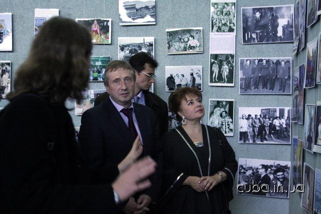 3 ноября, после пленарного заседания конференции «Благодарная Украина - благородной Кубе» состоялось официальное открытие фотовыставки. Его посетили Чрезвычайный и полномочный посол Республики Куба в Украине Феликс Леон Карбальо, ректор НТУУ «КПИ» Михаил Захарович Згуровский, Уполномоченный Верховной Рады Украины по правам человека Нина Ивановна Карпачова, директор Второго территориального департамента Министерства иностранных дел Украины Ростислав Владимирович Троненко, декан Факультета социологии и права Борис Владимирович Новиков. Для них была проведена небольшая экскурсия с комментариями, которые сами экскурсанты охотно и с интересом обсуждали и дополняли.