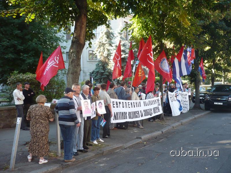 12 сентября 2011Больше ста человек собралось сегодня возле американского посольства в Украине, чтобы в очередной раз потребовать от властей этой страны освобождения из тюрем пяти кубинских героев-антитеррористов — Герардо Эрнандеса, Рамона Лабаниньо, Антонио Герреро, Фернандо Гонсалеса и Рене Гонсалеса. В этот день, тринадцать лет назад, они были арестованы, и уже много лет подряд в этот день по всему миру проходят акции протеста с требованием восстановить справедливость.