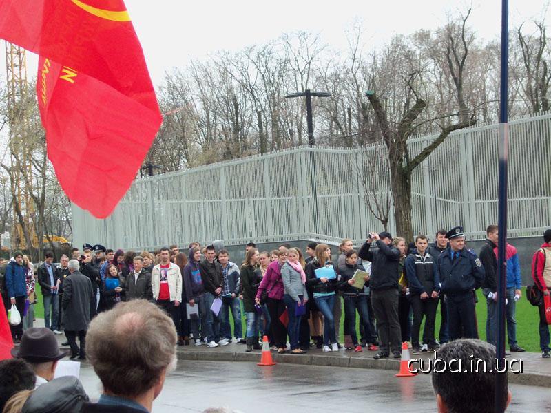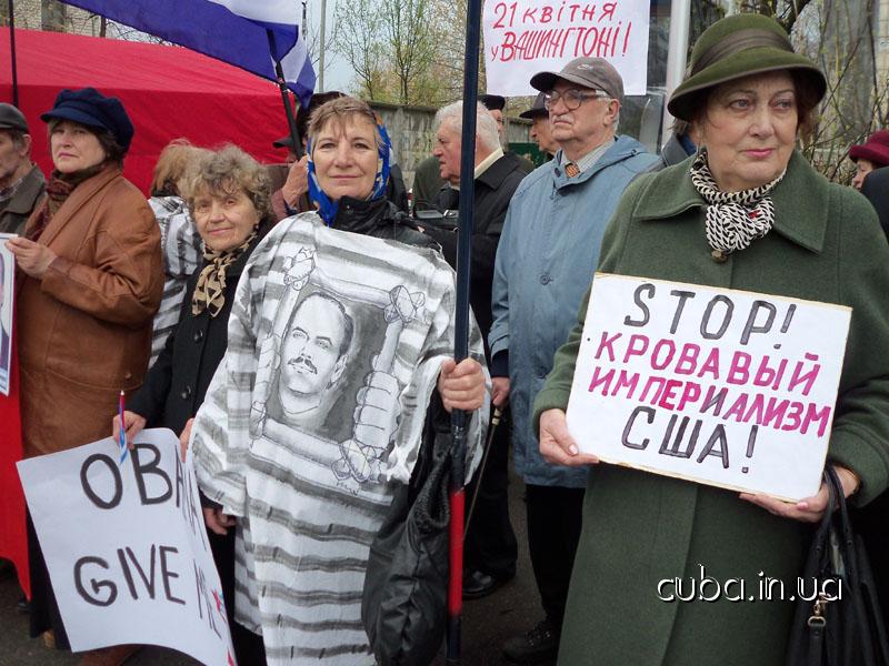 19 апреля 2012г.Сегодня, 19 апреля около ста человек начали свой день очень хорошим делом - пикетированием посольства США. Требования были просты и очевидны всем честным гражданам мира: «Свободу 5 кубинским борцам против терроризма», «прекращение блокады Кубы» и империалистической агрессивной политики в целом по отношению к другим странам, которой неукоснительно следуют Соединенные Штаты, несмотря ни на личные принципы, ни на религиозные взгляды ни на цвет кожи президента этой страны. Недаром в связи с прихода к власти Барака Обамы и с огромного количества невыполненных им обещаний в мире стала популярна фраза: «Президент хоть и «черный», а дом - белый!» Но все-таки мир не стоит на месте, и одного из пяти героев Рене Гонсалеса, благодаря, в первую очередь, тому, что количество солидарных людей к этому несправедливому делу растет из года в год, уже выпустили из тюрьмы. Но и оплот мировой реакции, США не дремлет, выдвигая другие условности, по которым тот же освобожденный герой Кубы должен пребывать на территории Майями еще три года. Также не стоит на месте и посольство США, которое не только активно вмешивается в политику многих стран мира, но и приобретает другие материальные формы. Так посольство этого государства в Украине из относительно небольшого здания, расположенного в узкой улочке, перебазировалось на территорию площадью в 4 га. Так бы сказать, маленькие США в Киеве, со всей инфраструктурой, с огромным пятиэтажным наземным зданием, (сколько этажей уходит под землю, нам трудно сказать) с паркингами и ангарами для своих неэкономных автомобилей и своих морских пехотинцев. Наверно правительства состязаются в угождении США, простые же граждане по размерам посольства мирового империалиста могут узнать, насколько «представители народа» реакционны в своих намерениях. Хотя в нашем случае это и так очевидно. Но это тема отдельно взятой статьи. Несмотря на переезд в более прочные стены, на американские улыбки и их «Сенкью вери мач» люди будут продолжать приходить к этому зданию во всех уголках земного шара с лозунгами освободить 5 кубинских антитерорристов, и другими требованиями, пока правительство США не перестанет чинить свои злодеяния против различных людей, различных наций, в том числе и своей, в угоду капиталу. Недаром во всех странах мира пикеты посольства США приобретают интернациональный характер. Так сегодня в Киеве кроме украинских представителей различных партий и организаций, объединенных Украинским национальным комитетом за свободу пяти кубинских героев, активно участвовали граждане Кубы и Сирии. А плакат с надписью: «Ждите нас 21 апреля в Вашингтоне» анонсировал митинг белого дома очень многочисленным американским комитетом. Подытожив, хотелось бы сказать, что акция удалась, что интересные содержательные выступления, чередовались с зажигательной кубинской музыкой, и все это слушали с интересом потоки студентов, которые стояли в длинных очередях за визами в посольство для получения своего личного опыта капиталистического «гостеприимства». Возможно, через несколько лет и они пополнят ряды пикетчиком, а может, и помогут превратить это чудесное новое здание в больницу или школу для украинских детей.
