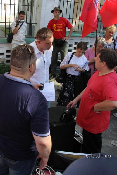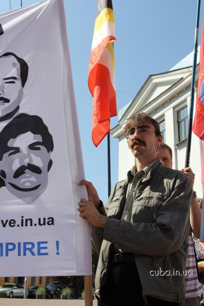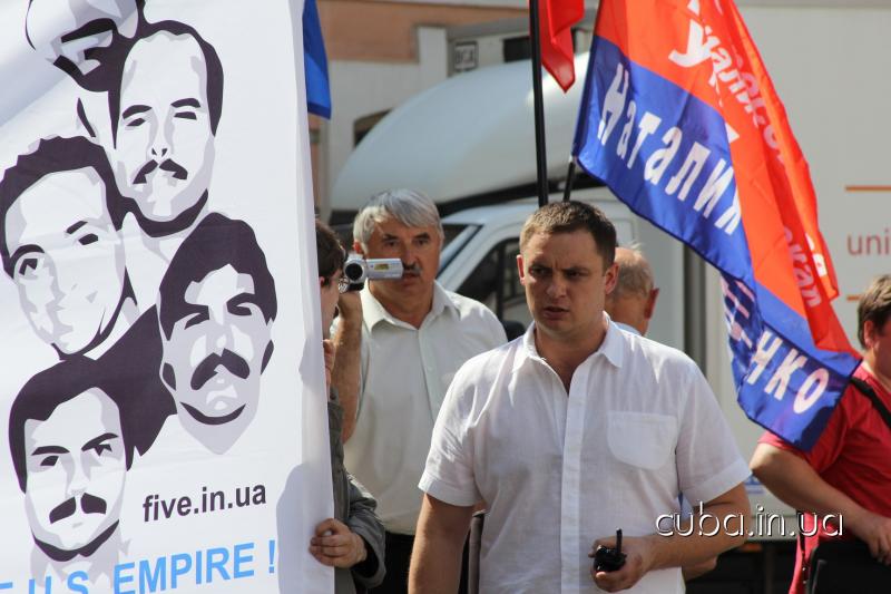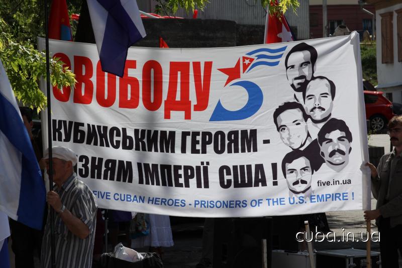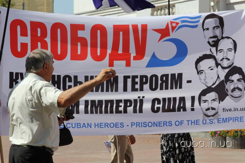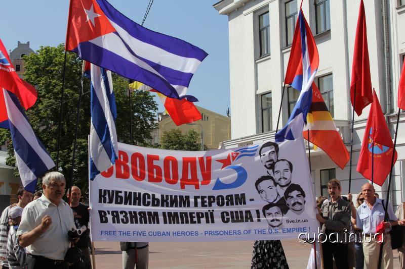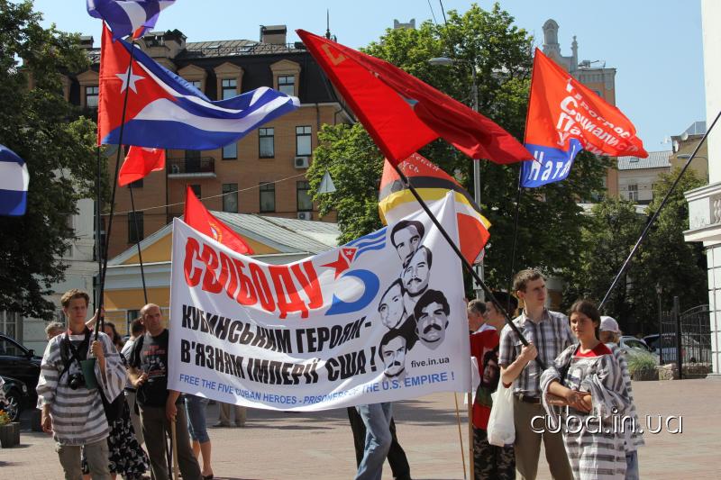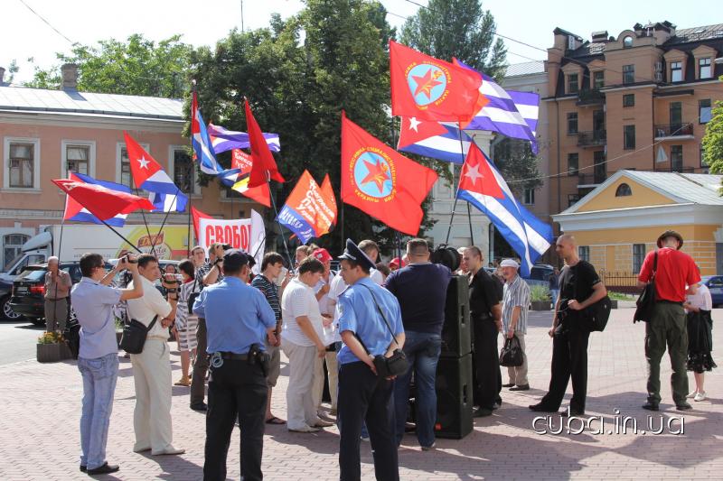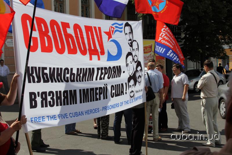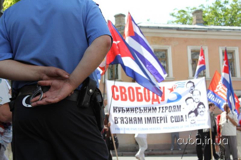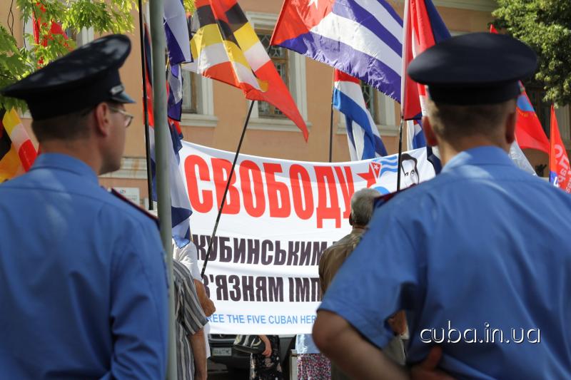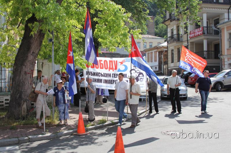 Несмотря на все препятствия, которые постаралось правительство Украины вместе с правоохранительными органами устроить для митингующих (заявка на митинг была отклонена, как оказалось, по непонятным причинам, но органы, передающие такую информацию, долго не хотели показывать решение суда, считая собравшихся людей недостойными отношения, которое предполагает закон), митинг состоялся. Хотя, скорее всего, милицейское начальство прекрасно понимало, что постановление суда, к которому оно апеллировало — «филькина грамота», поскольку, во-первых, кроме обжалованной, была заявка еще одной организации, которую в суде никто не оспаривал, во-вторых, на решение суда была подана апелляция, и, соответстенно, оно является недействительным до рассмотрения апелляции. Спор по поводу этих и других нарушений, который активно вели юридически подкованные товарищи, только придавал мероприятию особый колорит, как и скандирование лозунга «Свободу Пяти кубинским героям — украинской милиции позор!». В целом, митинг, а точнее, митинг и пикет, длились около полутора часов, после чего активисты с плакатом и флагами организовали шествие по улицам Подола, чтобы зайти к резиденции с другой стороны, где продолжили пикетирование, которое закончили за пять минут до истечения тех пятнадцати минут, через которые милицейское начальство пригрозило начать составлять административные протоколы на всех участников пикета.