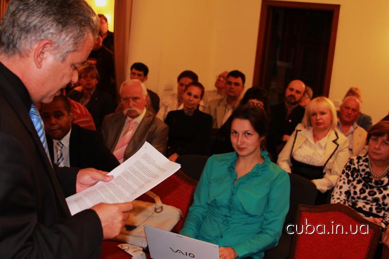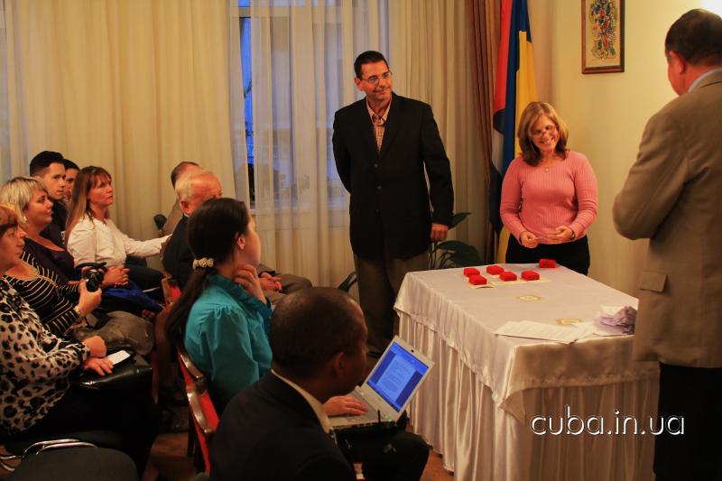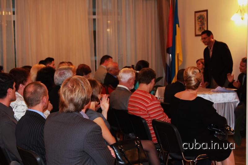 27 сентября 2012 года27 сенятбря состоялась встреча актива Ассоциации дружбы "Украина-Куба" с новым послом Республики Куба в Украине Эрнесто Антонио Сенти Дариасом и новым консулом Маргаритой Эмелиной Вайе Камино. Также на встрече первый советник посольства Эмилио Певида Пупо сделал доклад о современном политическом положении Кубы и новых инициативах солидарности в связи с изменениями состава комиссии ООН по правам человека. На встрече были вручены памятные воинские награды ассоциации воинов-интернационалистов воевавших на Кубе - 5 Героям Кубы, находящимся в застенках империи.