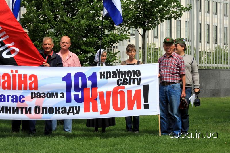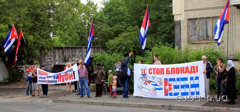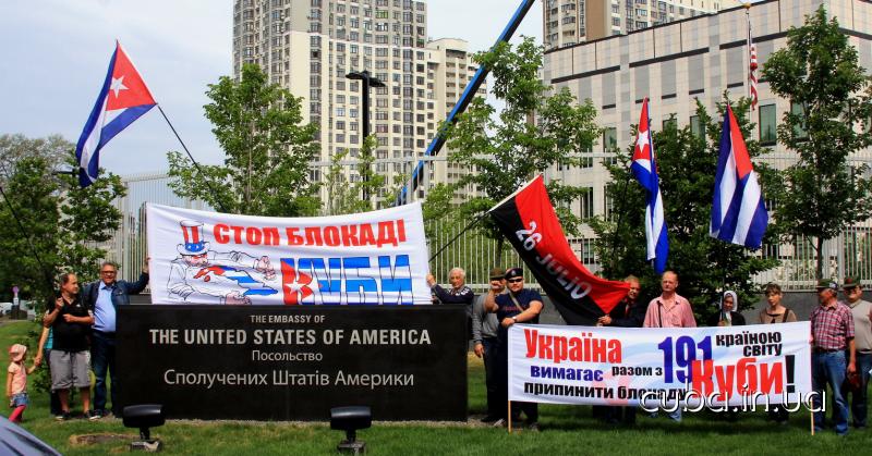 17 июня 2017 годаАктивисты Ассоциации дружбы "Украина-Куба" провели 17 июня 2017 года пикет Посольства США в Киеве под лозунгами: "Стоп блокаде Кубы!" и "Украина требует вместе с 191 страной мира прекратить блокаду Кубы!". Под аккомпанементы кубинской музыки, пикетирующие требовали от американских властей выполнить решение ООН и прекратить блокаду Кубы. Также звучали призывы усилить солидарность с Кубой и международное давление на США, в связи с недавним подписание Президентом Трампом очередных антикубинских инициатив.