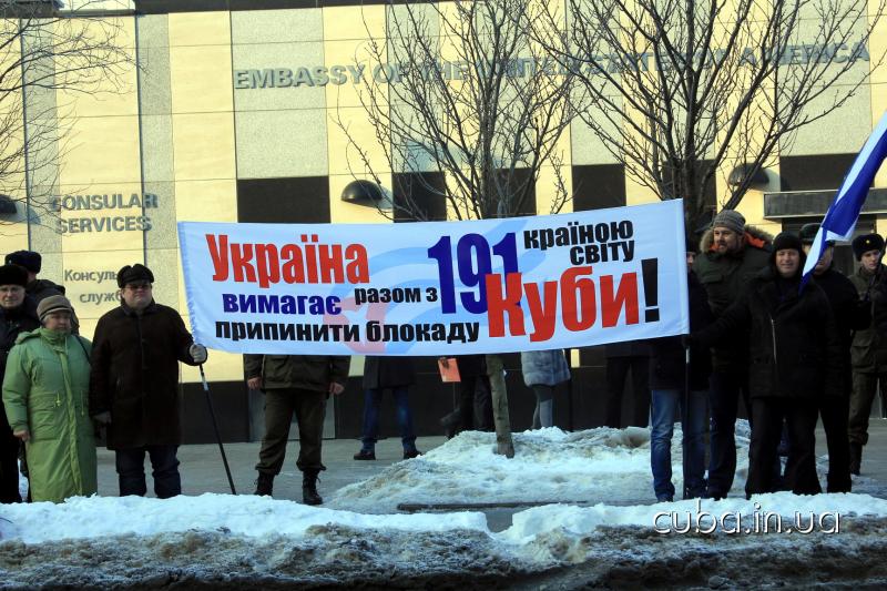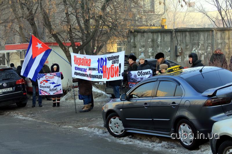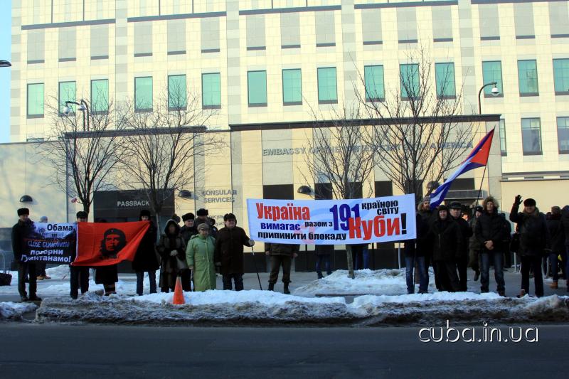 17 января 2017 годаАктивисты Ассоциации дружбы "Украина-Куба" провели 17 января 2017 года пикет Посольства США в Киеве под лозунгами: "Стоп блокаде Кубы!" и "Руки прочь от Кубы!".