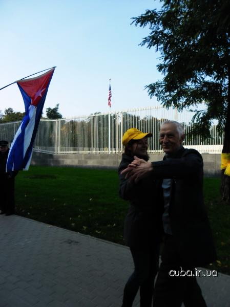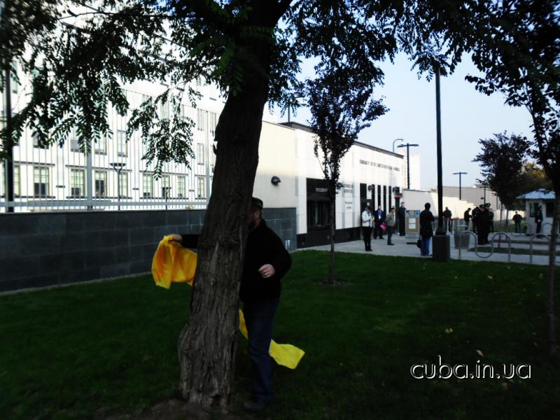 9 октября 2013 годаБолее тридцати активистов Украинского Национального Комитета «За свободу Пяти Героев Кубы» собрались перед посольством США в Киеве в среду 9 октября 2013 года, чтобы принять участие в акции «Завяжи жёлтую ленту на дерево за свободу Пяти кубинцев».