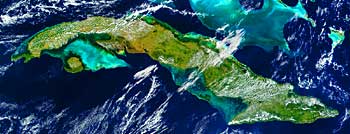 Остров Куба, остров Хувентуд и другие 1600 близлежащих островов и островков образуют Кубинский архипелаг. Он находится в западной части Карибского моря, и в силу его географического положения его называли Ключом к Новому свету и Форпостом Индий. Самые близкие к Кубе территории - это остров Эспаньола, где находятся Гаити и Доминиканская Республика, лежащий в 77 км к востоку; Багамские острова - в 140 км к северо-западу; Ямайка - в 146 км к югу; Соединенные Штаты лежат в 180 км к северу, и Мексика - в 210 км к западу.