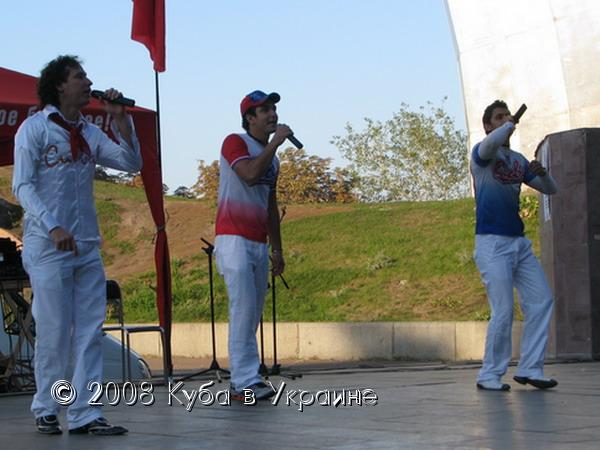 Киев не стал исключением. В символическом месте - амфитеатре Арки дружбы народов - горячие ритмы Кубы, в исполнении самих кубинцев, а именно: Луиса Рейна, Мигеля Анхеля, Майкеля Роке, Рейнальдо Погуэля, проекта "Матаморос сон" и танцевальной школы "Сальса Клуб", - согревали более 500 жителей и гостей столицы Украины в прохладный, но солнечный осенний вечер. Зажигательные песни и энергичные танцы в ритме ча-ча-ча, сальса и румбы, длившиеся около полутора часа, ошеломительные наряды не оставили равнодушными ни к Кубе, ни к Пяти кубинским героям ни одного зрителя. Каждая песня, каждый танец сопровождался аплодисментами и криками восхищения. А последний танец танцевали на сцене одновременно и кубинцы и украинцы, он был прост, но очень энергичен и весел. Около 30 зрителей приняли в нем участие.