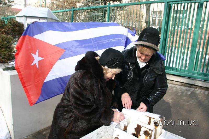 Кубинское посольство не пряталось за забором, оно для своих друзей открыло двери (впрочем, как всегда) и на митингующих ждал домашний прием, не отяжеленный никакими церемонностями, на котором каждый чувствовал себя, как на своем месте. Сначала женщины вместе с советником посла Республики Кубы Эмилио Певида возложили цветы к памятнику Хосе Марти и обменялись речами, которые трогали своей искренностью. Так говорят только по-настоящему переживающие за дело люди, а не те, которым платят 50 грн. в час за торжественное размахивание флагов, как на многочисленных акциях, на которые «заболела» Украина. Завершилось все дружеским чаепитием в посольстве, где участники митинга обменивались впечатлением, общались с послом Республики Куба и его советником, обсуждали планы на будущее и просто наслаждались приятной, непринужденной атмосферой. На секунду, посмотрев на это глазами «человека со стороны», я поняла, отчего дело Кубинской Пятерки никогда не покроется пылью забвения, а будет с каждым днем только набирать обороты, пока эти замечательные люди томятся в тюрьмах «самой демократической стороны в мире». Потому что его защищают наиболее честные человеческие чувства, а их невозможно купить за деньги.