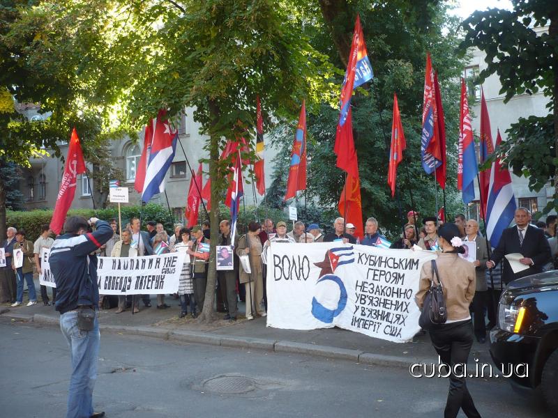 12 сентября 2011Больше ста человек собралось сегодня возле американского посольства в Украине, чтобы в очередной раз потребовать от властей этой страны освобождения из тюрем пяти кубинских героев-антитеррористов — Герардо Эрнандеса, Рамона Лабаниньо, Антонио Герреро, Фернандо Гонсалеса и Рене Гонсалеса. В этот день, тринадцать лет назад, они были арестованы, и уже много лет подряд в этот день по всему миру проходят акции протеста с требованием восстановить справедливость.