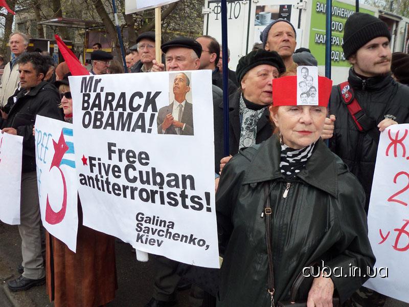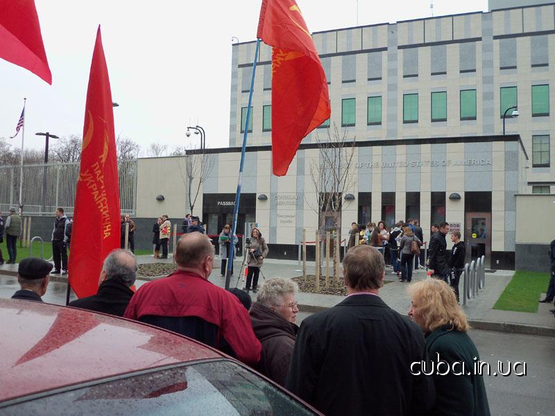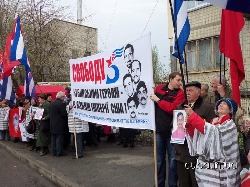 19 апреля 2012г.Сегодня, 19 апреля около ста человек начали свой день очень хорошим делом - пикетированием посольства США. Требования были просты и очевидны всем честным гражданам мира: «Свободу 5 кубинским борцам против терроризма», «прекращение блокады Кубы» и империалистической агрессивной политики в целом по отношению к другим странам, которой неукоснительно следуют Соединенные Штаты, несмотря ни на личные принципы, ни на религиозные взгляды ни на цвет кожи президента этой страны. Недаром в связи с прихода к власти Барака Обамы и с огромного количества невыполненных им обещаний в мире стала популярна фраза: «Президент хоть и «черный», а дом - белый!» Но все-таки мир не стоит на месте, и одного из пяти героев Рене Гонсалеса, благодаря, в первую очередь, тому, что количество солидарных людей к этому несправедливому делу растет из года в год, уже выпустили из тюрьмы. Но и оплот мировой реакции, США не дремлет, выдвигая другие условности, по которым тот же освобожденный герой Кубы должен пребывать на территории Майями еще три года. Также не стоит на месте и посольство США, которое не только активно вмешивается в политику многих стран мира, но и приобретает другие материальные формы. Так посольство этого государства в Украине из относительно небольшого здания, расположенного в узкой улочке, перебазировалось на территорию площадью в 4 га. Так бы сказать, маленькие США в Киеве, со всей инфраструктурой, с огромным пятиэтажным наземным зданием, (сколько этажей уходит под землю, нам трудно сказать) с паркингами и ангарами для своих неэкономных автомобилей и своих морских пехотинцев. Наверно правительства состязаются в угождении США, простые же граждане по размерам посольства мирового империалиста могут узнать, насколько «представители народа» реакционны в своих намерениях. Хотя в нашем случае это и так очевидно. Но это тема отдельно взятой статьи. Несмотря на переезд в более прочные стены, на американские улыбки и их «Сенкью вери мач» люди будут продолжать приходить к этому зданию во всех уголках земного шара с лозунгами освободить 5 кубинских антитерорристов, и другими требованиями, пока правительство США не перестанет чинить свои злодеяния против различных людей, различных наций, в том числе и своей, в угоду капиталу. Недаром во всех странах мира пикеты посольства США приобретают интернациональный характер. Так сегодня в Киеве кроме украинских представителей различных партий и организаций, объединенных Украинским национальным комитетом за свободу пяти кубинских героев, активно участвовали граждане Кубы и Сирии. А плакат с надписью: «Ждите нас 21 апреля в Вашингтоне» анонсировал митинг белого дома очень многочисленным американским комитетом. Подытожив, хотелось бы сказать, что акция удалась, что интересные содержательные выступления, чередовались с зажигательной кубинской музыкой, и все это слушали с интересом потоки студентов, которые стояли в длинных очередях за визами в посольство для получения своего личного опыта капиталистического «гостеприимства». Возможно, через несколько лет и они пополнят ряды пикетчиком, а может, и помогут превратить это чудесное новое здание в больницу или школу для украинских детей.