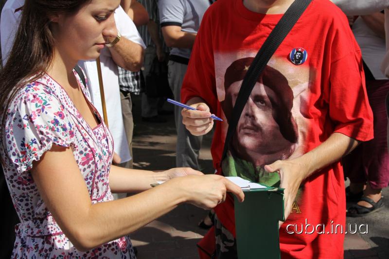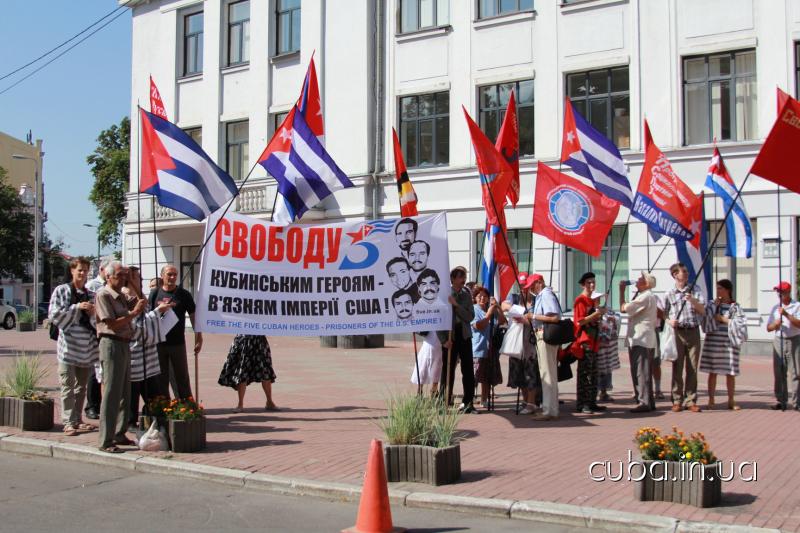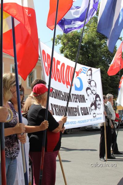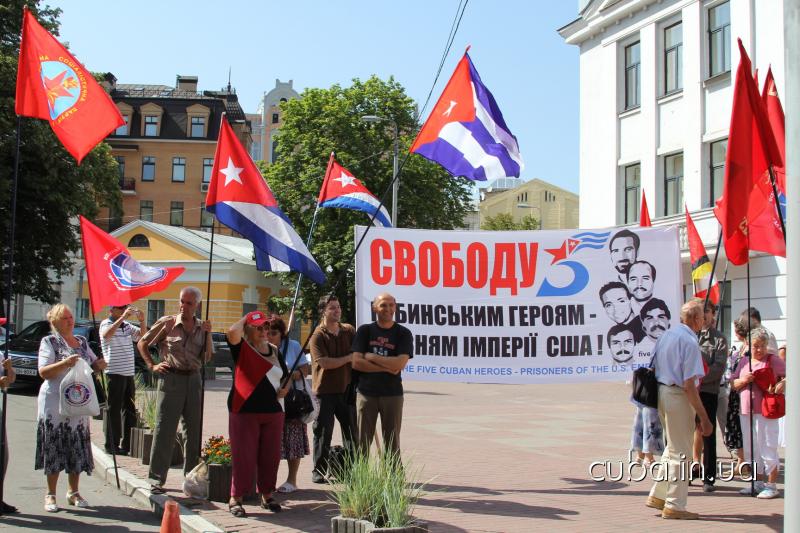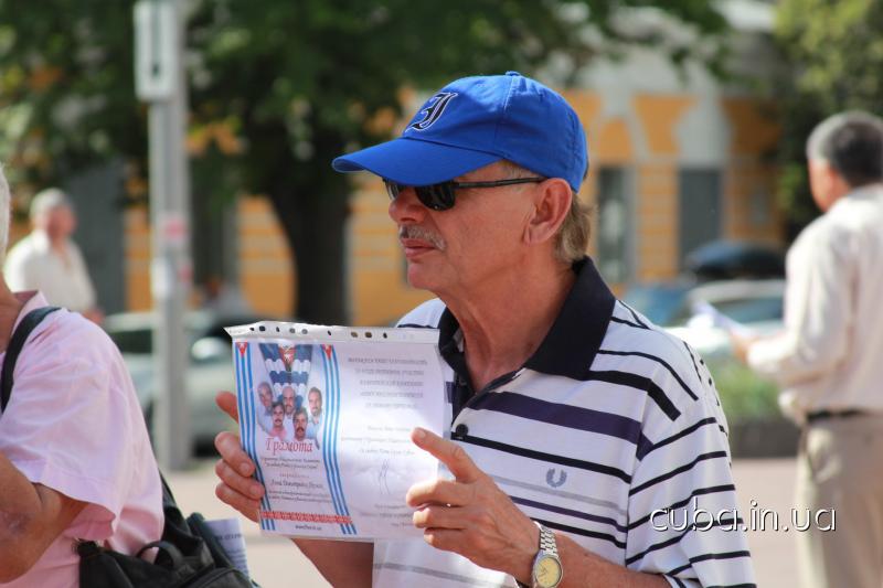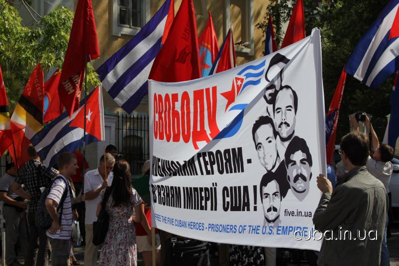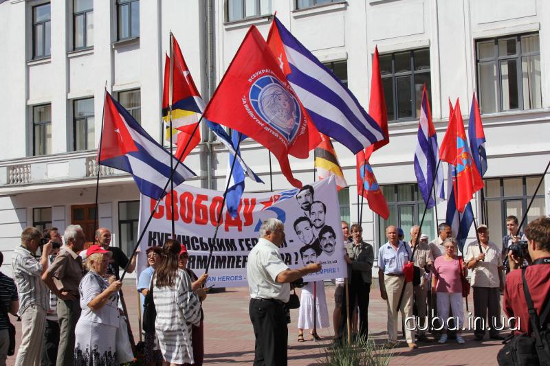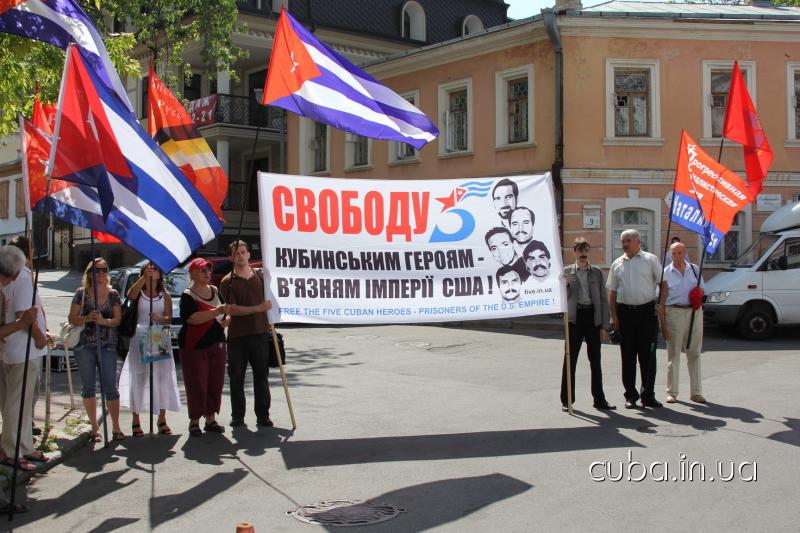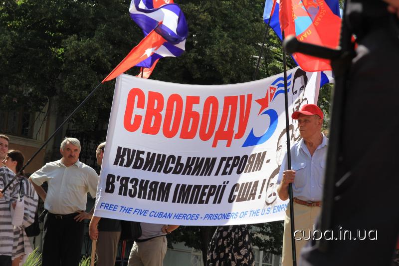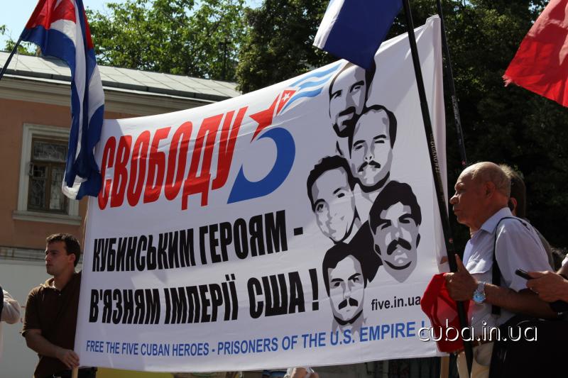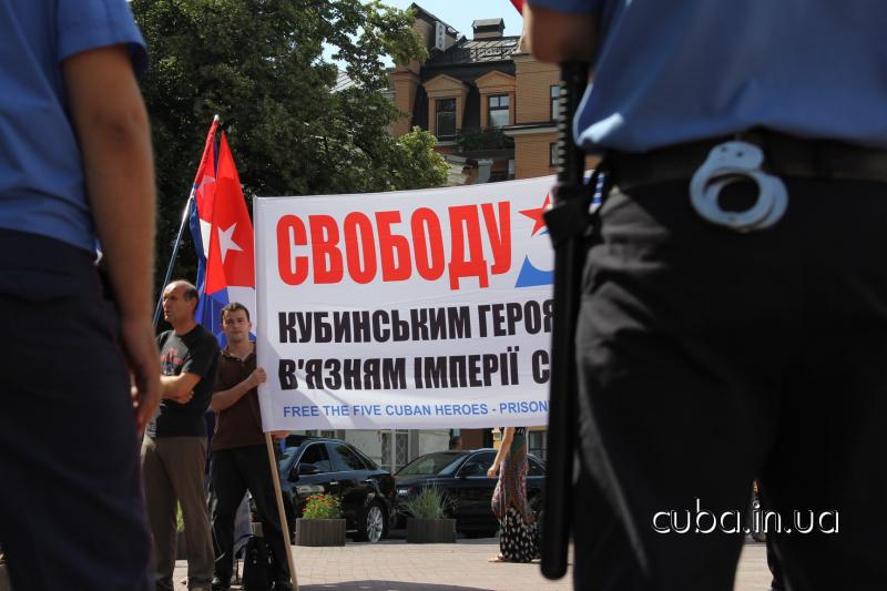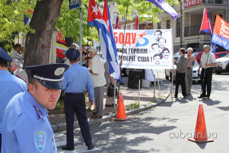 Несмотря на все препятствия, которые постаралось правительство Украины вместе с правоохранительными органами устроить для митингующих (заявка на митинг была отклонена, как оказалось, по непонятным причинам, но органы, передающие такую информацию, долго не хотели показывать решение суда, считая собравшихся людей недостойными отношения, которое предполагает закон), митинг состоялся. Хотя, скорее всего, милицейское начальство прекрасно понимало, что постановление суда, к которому оно апеллировало — «филькина грамота», поскольку, во-первых, кроме обжалованной, была заявка еще одной организации, которую в суде никто не оспаривал, во-вторых, на решение суда была подана апелляция, и, соответстенно, оно является недействительным до рассмотрения апелляции. Спор по поводу этих и других нарушений, который активно вели юридически подкованные товарищи, только придавал мероприятию особый колорит, как и скандирование лозунга «Свободу Пяти кубинским героям — украинской милиции позор!». В целом, митинг, а точнее, митинг и пикет, длились около полутора часов, после чего активисты с плакатом и флагами организовали шествие по улицам Подола, чтобы зайти к резиденции с другой стороны, где продолжили пикетирование, которое закончили за пять минут до истечения тех пятнадцати минут, через которые милицейское начальство пригрозило начать составлять административные протоколы на всех участников пикета.
