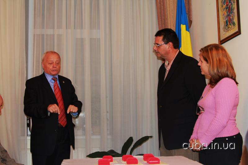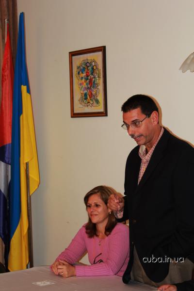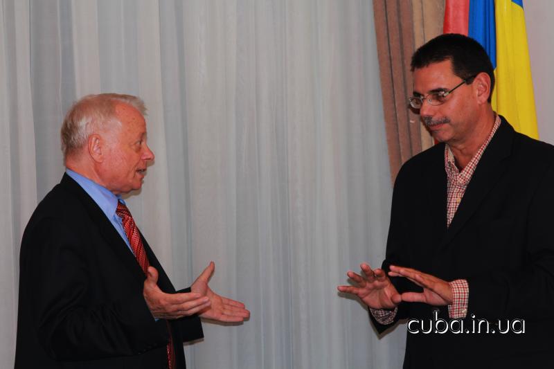 27 сентября 2012 года27 сенятбря состоялась встреча актива Ассоциации дружбы "Украина-Куба" с новым послом Республики Куба в Украине Эрнесто Антонио Сенти Дариасом и новым консулом Маргаритой Эмелиной Вайе Камино. Также на встрече первый советник посольства Эмилио Певида Пупо сделал доклад о современном политическом положении Кубы и новых инициативах солидарности в связи с изменениями состава комиссии ООН по правам человека. На встрече были вручены памятные воинские награды ассоциации воинов-интернационалистов воевавших на Кубе - 5 Героям Кубы, находящимся в застенках империи.